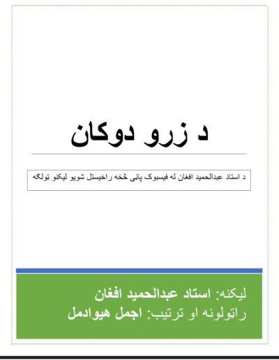 د استاد عبدالحمید افغان د بیلا بیلو لیکنو غورچاڼ ده د زده کړې لپاره ډیر څه لري پدي خاطر مي راټولي او د کتاب په بڼه مي نشر کړلو تر څو لټونکي اشخاص په اساني ترې مستفید شي