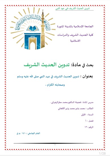 تدوين الحديث الشريف في عهد النبي صلی الله علیه وسلم وصحابته الکرام