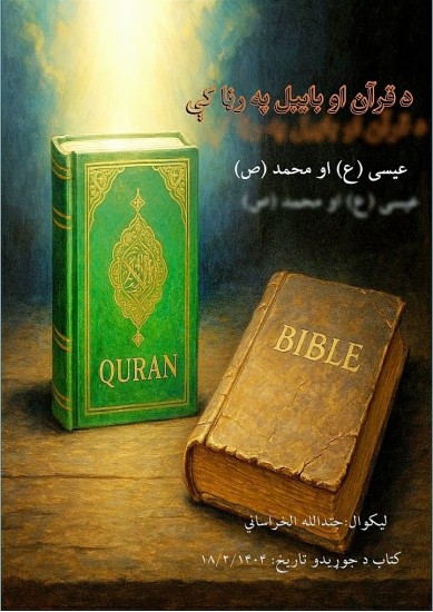 د کتاب د "د قرآن او بایبل په رڼا کې: عیسی (ع) او محمد (ص)"لنډه پېژندنه موږ نن د فکري جګړې، مسیحي میډیايي شکوکو، او د دیني انحرافاتو له داسې طوفانه تېرېږو، چې که حقیقت مستند او منطقي وړاندې نه شي، نو ډېر حقلټونکي به ګمراه شي. دا کتاب د قرآن او بایبل ترمنځ تطبیقي مطالعه ده، چې پکې د عیسی علیه السلام او محمد صلی الله علیه وسلم ریښتینی مقام، د وحې په رڼا کې روښانه شوی دی. په دې کتاب کې به ومومئ: د عیسی (ع) د نبوت، پیغام او حقیقت مستند وضاحت د محمد (ص) په اړه د بایبل بشارتونه د تحریف شوو عقایدو منطقي رد او علمي تحلیل د عیسوي-اسلامي مفاهیمو ترمنځ د اتفاق او اختلاف حدود او دا چې څنګه اوسنی عصر د دعوت یوه نوې مرحله غواړي — لیک، دلیل او برهان. دا کتاب د هغو کسانو لپاره دی چې غواړي د شکونو پر ځای یقین ولري، او د بین الادیاني حقایقو ژوره مطالعه وکړي. دا یو علمی دعوت دی، نه احساساتي خطاب.